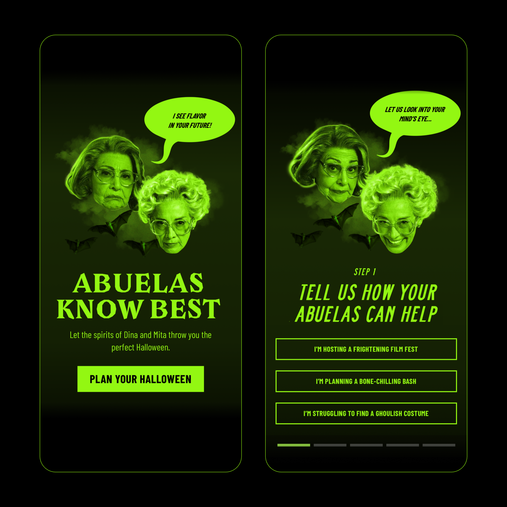 Embracing the full spirit of Halloween, the campaign leveraged the Amazon canvas—from a custom brand store to Amazon lockers near college campuses. Within our brand store, we introduced Abuelas Know Best, our playful take on A.I. (Abuela-Intelligence!), where visitors could plan their Halloween by answering a few fun questions. The outcome? A curated bundle of products, all available for purchase on Amazon.