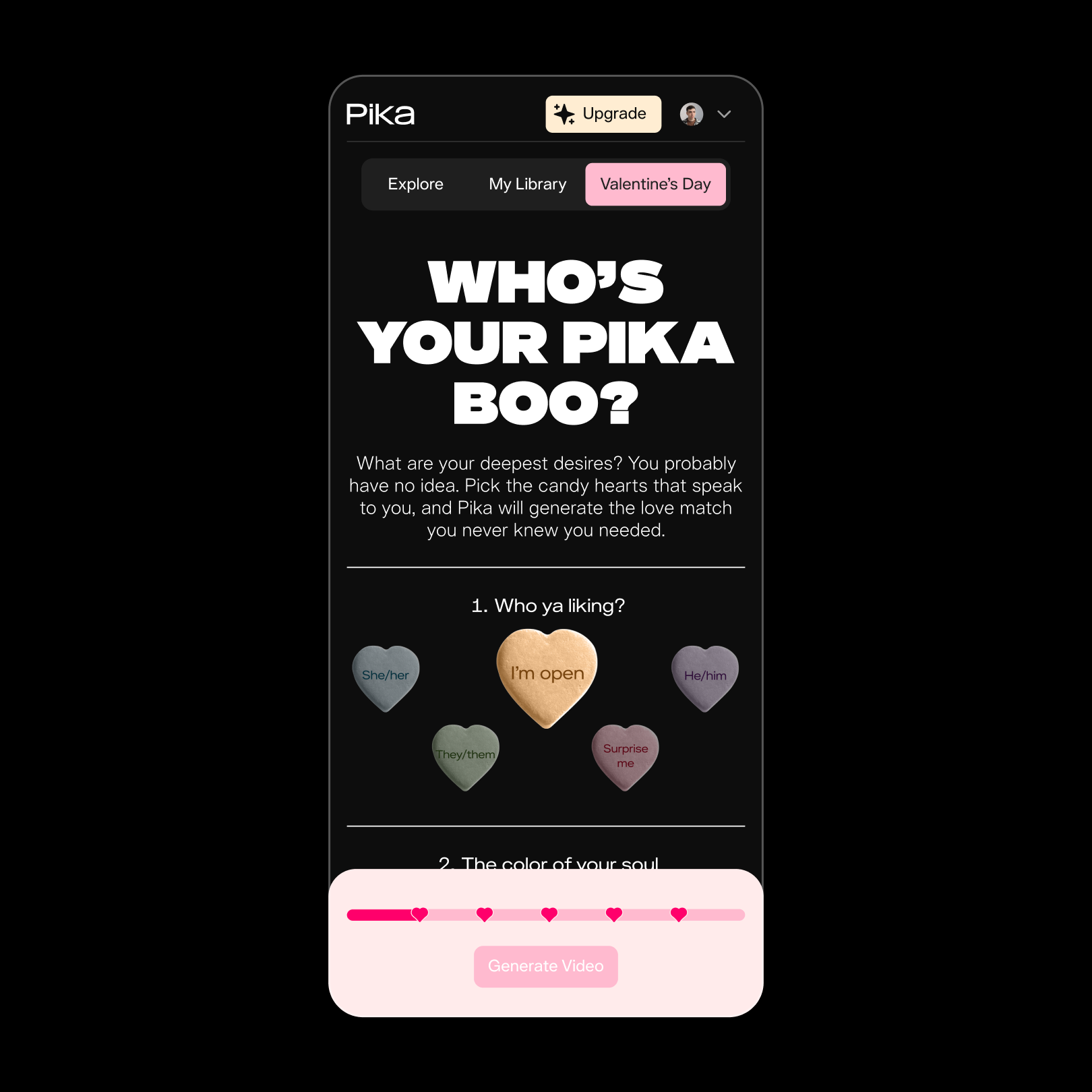 Tasked to create fun, buzz-worthy content for AI video generation leader Pika, we created a bespoke temporary feature on the website specifically for Valentine’s Day.